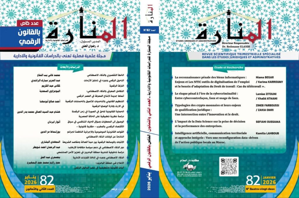 بقلب مليء بالغبطة والفرح نتشرف بأن نضع بين يدي القارئ الكريم العدد الخاص من مجلة المنارة للدراسات القانونية والإدارية في موضوع القانون الرقمي ، انه يشكل بحق منارة تضيء دروب الباحثين والمتخصصين وتنير سبيلهم. واطلالة حاولنا من خلالها إضافة بحوثا جديدة في هذا النوع من التخصص القانوني .