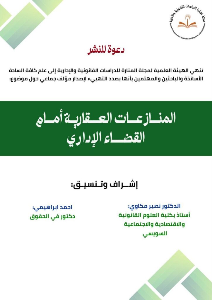 تنهي الهيئة العلمية لمجلة المنارة للدراسات القانونية والإدارية إلى علم كافة السادة الأساتذة والباحثين والمهتمين بأنها بصدد التهييء لإصدار مؤلف جماعي حول موضوع: